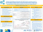 Background: Antibiotic duration is one of the pillars of antimicrobial stewardship programs (ASP) as it helps to limit unnecessary antibiotic exposure while continuing to provide appropriate care for infections. In our emergency department (ED), clinicians are using first-line guideline-recommended antibiotics as an appropriate choice for most patients (per our ASP report tracking), however, duration continues to be prolonged especially for community acquired pneumonia (CAP) and acute bacterial rhinosinusitis (ABRS). National guidelines recommend shortening antibiotic durations to 3-5 days for CAP and 5-7 days for ABRS, however currently only 22% of patients discharged from our ED receive the recommended duration. Objective: Our aim is to increase percentage of children discharged home from the ED with a diagnosis of CAP or ABRS treated with an optimal antibiotic duration (5 days or less for CAP, 7 days or less for ABRS) from 22% to 70% by July 2025, while assessing for differences in care based on demographic and socioeconomic factors. Design/Methods: A multidisciplinary team (infectious diseases physicians, ED and urgent care physicians, advanced practice providers, nurses, and pharmacy) formed in December 2023. Outcome metric is the percentage of patients receiving recommended antibiotic duration for CAP or ABRS; data trends analyzed monthly and process changes implemented according to the SPC Out of Control Process Western Electric rule set. Process metrics include use of order set, quick discharge order set, and QR code. Balancing metric is the number of return visits with the same discharge diagnosis within 14 days. Utilizing cause-and-effect diagram, driver diagram (Figure 1), and PICK chart (Figure 2), we identified possible interventions. Plan-Do-Study-Act cycles so far have included implementation of new internal CAP, updates to electronic medical record and quick discharge order sets. A survey of prescriber comfort with shorter duration identified barriers and provided education, which has led to posting evidence for lower duration treatment to prescribers in their workrooms and developing new ABRS CPG. Results: We have shifts in the central line of our overall outcome in August 2023, May and July 2024 to 65.4% with no change in balancing metric (Figures 3A-CQBS, annotated with PDSA cycles). Discussion: We have seen a reduction in the duration of antibiotics for CAP and ABRS with electronic medical record and prescriber education interventions. Future cycles will focus on barrier mitigation and increased data transparency, with huddle board reminders and positive encouragement to providers.