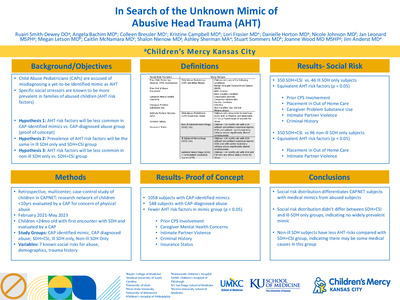 These posters have been presented at meetings in Children's Mercy and around the world. They represent research that was done at the time they were created, and may not represent medical knowledge or practice as it exists at the time viewers access these posters.>
